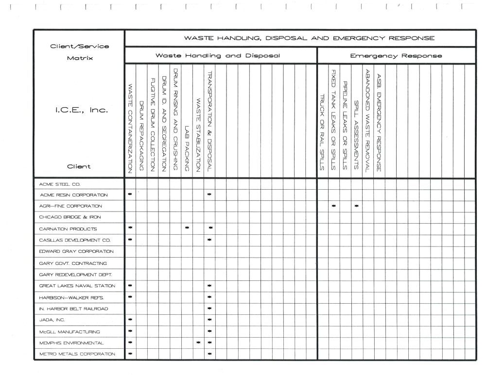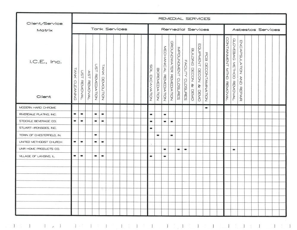 All of our projects were provided in strict accordance with local, state and federal EPA and OSHA rules and regulations. Our objective was to provide our customers with a turn-key approach to environmental management and control, while offering the most cost-effective, environmentally sound programs available.